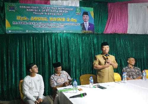 DEPOKTIME.COM, Cimpaeun – Dalam sosialisasi tugas dan wewenang Komisi A DPRD Kota Depok, anggota Komisi A DPRD Kota Depok Abdul Hamid jelaskan tupoksinya ke masyarakat Cimpaeun Kecamatan Tapos.